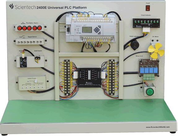 Εκπαιδευτικό-πειραματικό επιτραπέζιο σύστημα, σχεδιασμένο για την μελέτη των PLC, καθώς και της χρήσης τους σε βιομηχανικές εφαρμογές. Κατάλληλο για την εξοικείωση με την καλωδίωση των PL και την χρήση διακοπτών και αισθητήρων, για έλεγχο και διαχείριση του συστήματος.