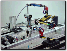 - Το σύστημα αποτελείται από ταινιόδρομο κλειστής διαδρομής, επί του οποίου μεταφέρονται παλέτες με αντικείμενα και εξαρτήματα προς τους διάφορους σταθμούς της προσομοιούμενης βιομηχανικής παραγωγής ολοκληρωμένης με Η/Υ (CIM).