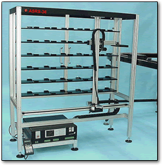 - Αυτόματο σύστημα, βιομηχανικού σχεδιασμού, αποθήκευσης και ανάκτησης αντικειμένων, 72 θέσεων σε δύο παράλληλα ικριώματα 6x6, κατάλληλο για εκπαιδευτικούς σκοπούς.