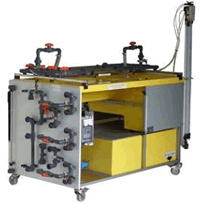 Πλήρης αυτόνομη συσκευή επί υδραυλικής τράπεζας, με αγωγούς και συνδετήρια για διάφορες διαμορφώσεις δικτύων σωληνώσεων. Μετρήσεις πίεσης σε διάφορα σημεία, με μανόμετρα.