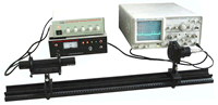 This experimental system is designed to quantitatively investigate the acousto-optic effect of a crystal sample. There are two options of the photo-receiving device, i.e. a photo-cell with amplifier for manual data recording, or a linear CCD for oscilloscope display and data analysis.