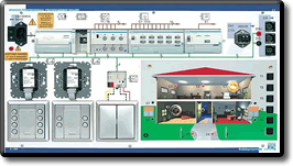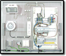 Αποτελούμενη διανομέα, RCD 40/0.03A 4-πόλων, μονοπολικό διακόπτη κυκλώματος τύπου Β 10Α, dimmer 300W, dimmer 0-10V, λυχνία αλογόνου 100W, ηλεκτρονικό στραγγαλιστικό πηνίο για λυχνίες αλογόνου με ενσωματωμένη λυχνία 50W, αισθητήρα με μπουτόν, καλώδια κ.λ.π.