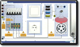 - Τριφασικό καταναλωτή, λυχνία με διακόπτη, τριφασική πρίζα, μονοφασική πρίζα Schuko, προσομοιωτή βλαβών με τρία διαφορετικά περιστρεφόμενα κομβία για εισαγωγή βλαβών στα κυκλώματα φωτισμού και πριζών.